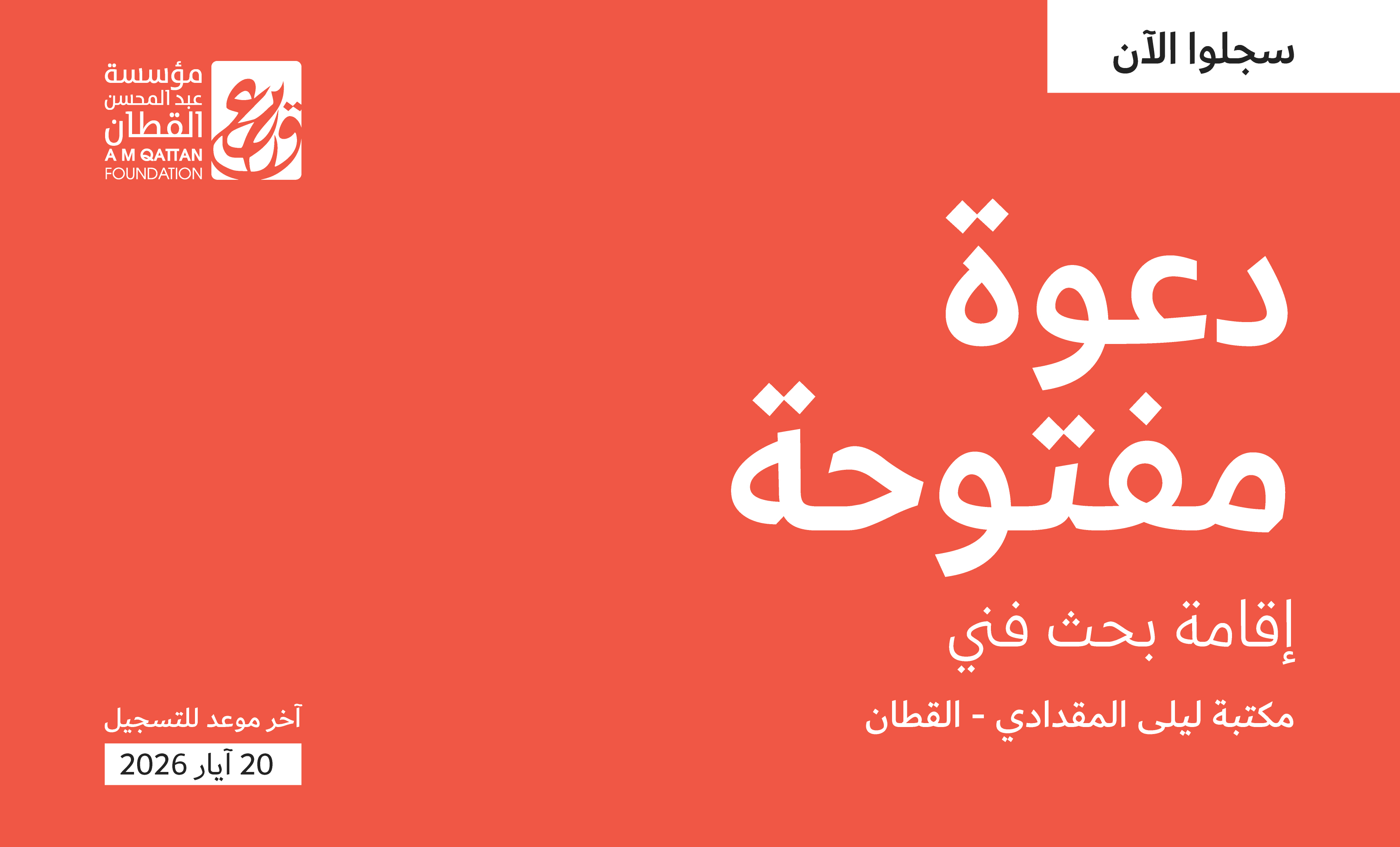 تدعو مكتبة ليلى المقدادي القطان الباحثين والباحثات في مجال دراسات الفن، وقيمي/ات المعارض الفنية، والأكاديميين/ات الذين تتضمن أبحاثهم/ن ممارسات أو تطبيقات فنية، إلى تقديم مقترحات عمل تساهم في تشكيل أرشيف مؤسسة عبد المحسن القطَّان، وتتفاعل مع مستوياته المتعددة، وتتعاطى مع مواده بكونها مرجعاً لعملية إنتاج معرفة مستمرة، ومنهلاً لقراءة الواقع الحالي، واستشراف المستقبل. تشجع الإقامة منهجيات البحث التي تعتمد على التجربة والتفاعل، والإشراك المجتمعي في عملية البحث، والتي تتجاوز الإنتاج النظري لتشمل مخرجات بحثية أو فنية أو معرفية.