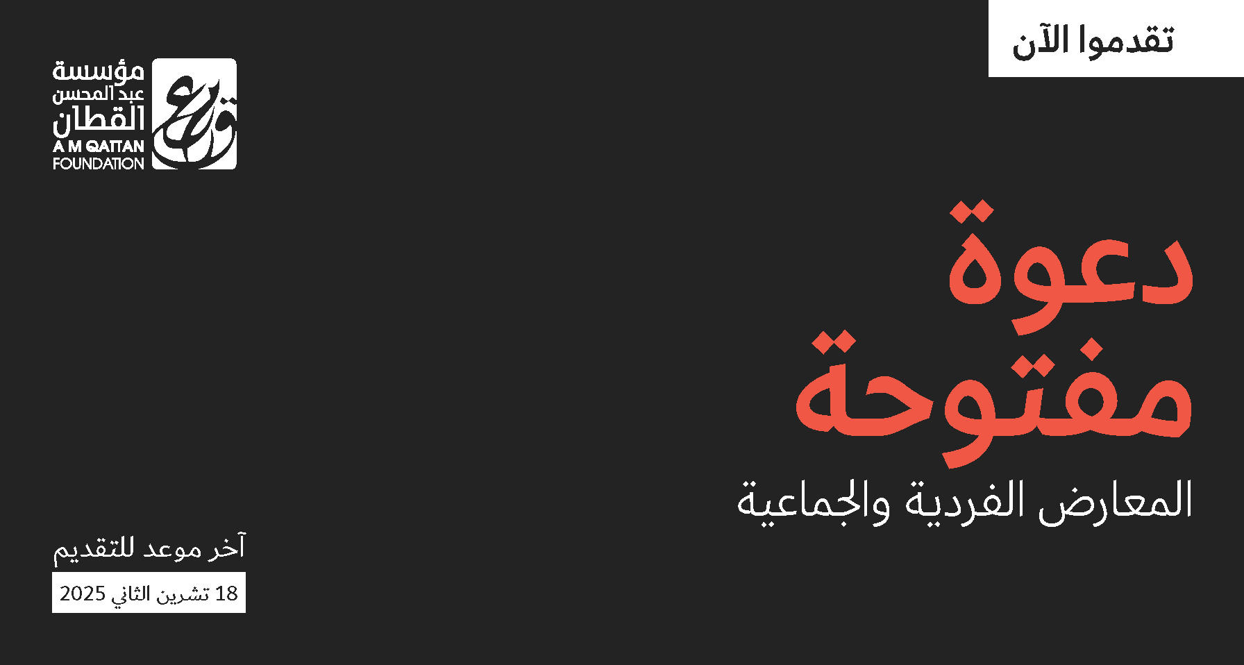 نتيح من خلال هذه الدعوة فضاءَ معرضنا (طابق -1) لاستضافة 5 معارض/ تجارب فنية، تنظَّم على مدار العام لتشجّع الفنانين/ات والمجموعات الفنية على تقديم أعمالهم ومشاركتها مع الجمهور.
