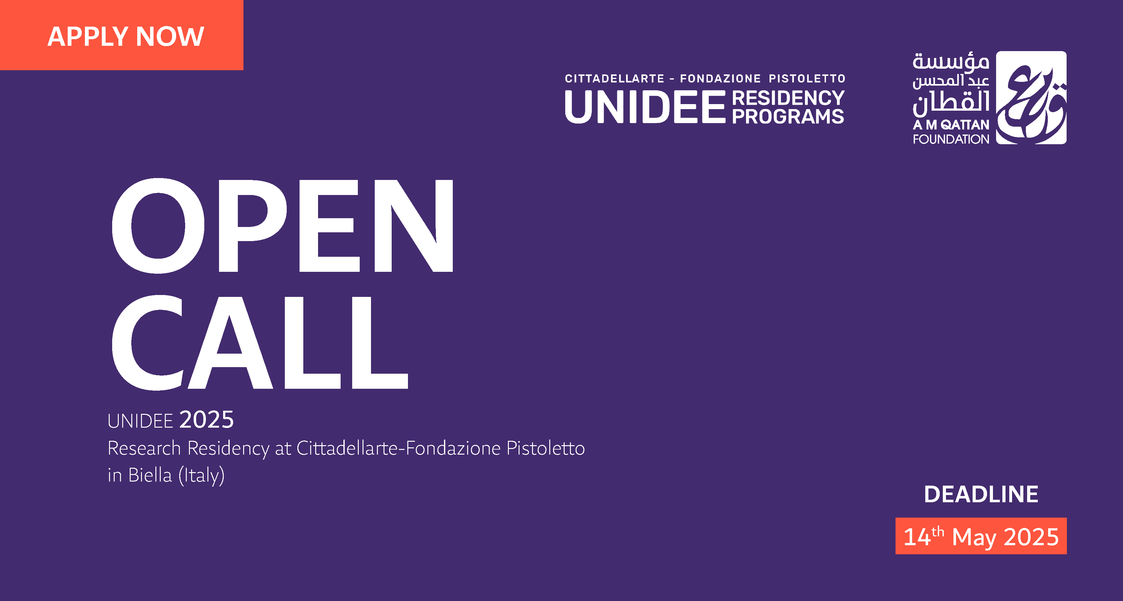 UNIDEE Residency Programs and A.M. Qattan Foundation are pleased to announce an open call for a two-month research residency at Fondazione Pistoletto Cittadellarte Onlus in Biella (Italy) during the autumn of 2025.