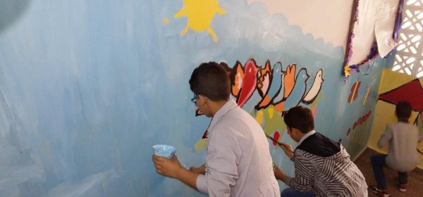 لبنان: الفنانة تغريد عبد العال وطلابها يزيّنون جدران المدرسة برسومات ملونة