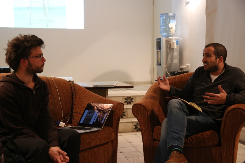 نظمت مؤسسة عبد المحسن القطان، الأربعاء 15 شباط 2017، حواراً جمع الفنان الفلسطيني مجد عبد الحميد والفنان البرازيلي جيان سبينا، حول سياق إنتاج الأعمال الفنية باستخدام أعمال الأخير كمادة للنقاش.