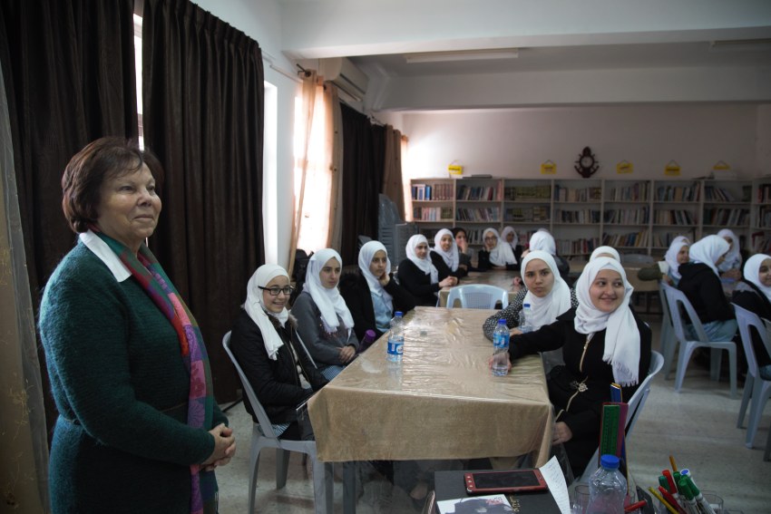 رام الله – نظمت مكتبة مؤسسة عبد المحسن القطَّان، لقاء جمع الكاتبة عائشة عودة مع مجموعة من طالبات مدرسة القبيبة الثانوية، وذلك ضمن سلسة نشاطات "مبدع في مدرسة"، التي تنظمها المكتبة، وتهدف إلى تشجيع الطلبة على القراءة والكتابة الإبداعية، من خلال الإنخراط في نشاطات وتدريبات مع الكتّاب والفنانين.