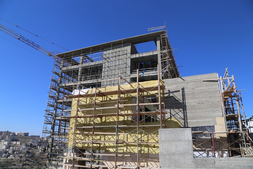 تستمر اعمال البناء في مشروع المبنى الجديد للمؤسسة، حيث دخلت التشطبيات مرحلة جديدة بدأ فيها تركيب الجدران الخارجية وبناء التقسيمات الداخلية لمرافق المبنى. ويُغطى قسم من الجدران الخارجية بالألمنيوم والزجاج، وقسم آخر بالحجر، حيث يستخدم حجر ترقوميا الفلسطيني الوردي المموّج.