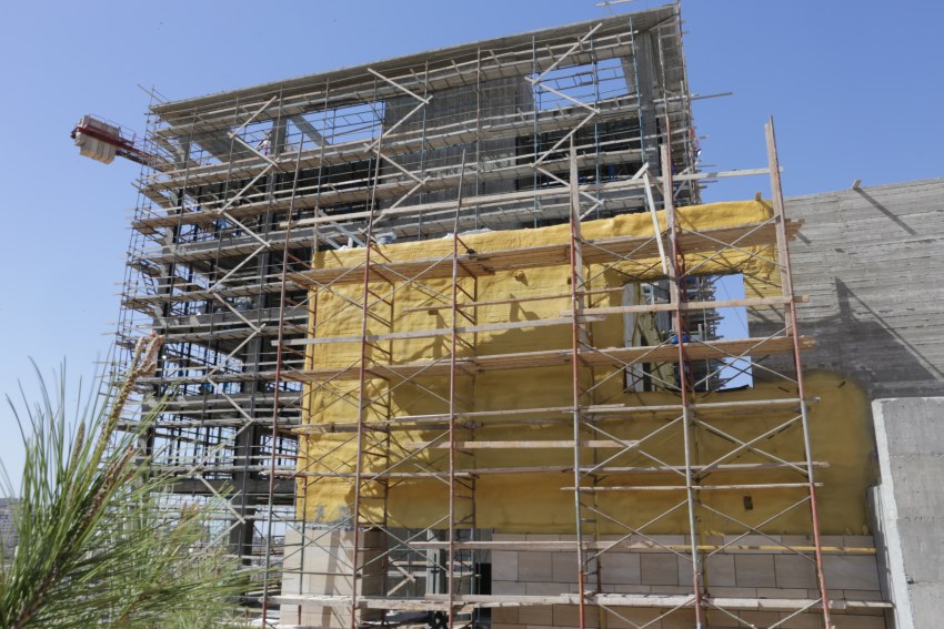 تواصلت اعمال البناء والتجهيزات في مشروع المبنى الجديد لمؤسسة عبد المحسن القطان في حي الطيرة برام الله، حيث تستمر مرحلة عزل الجدران بمادة صديقة للبيئة مركبة من "الصويا" الممزوجة بمواد مضادة للرطوبة والماء والحرارة، كما يستمر تركيب حجر ترقوميا الفلسطيني الوردي المموج على جوانب المبنى.