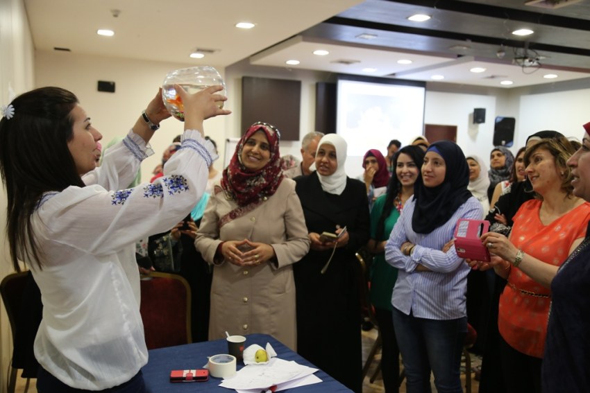 ثلاثون مربيّة أطفال دخلنَ إلى قاعة صغيرة بخطى مترددة يتساءلن عن سبب وضع عشّ فيه بيض على الطاولة المحاذية للباب، وما أن التفتن يميناً حتى وجدنَ حشراتٍ صغيرة خلف زجاجٍ دائريّ على طاولةٍ أخرى، وثمّ حوض سمكٍ تسبح فيه سمكةٌ ذهبيّة، وعلى الطاولة الرابعة كاميرات قديمة، وصنابير مياه متعدّدة الأشكال على الطاولة التي تليها، وبالطبع لم يستطعنَ إغفال الطاولة التي تعكس ظلّاً ملوّناً على الجدار، وأخيراً الطاولة السابعة التي حملتْ بذوراً وأوعيةً فيها تراب.