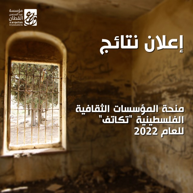يسر مؤسسة عبد المحسن القطَّان أن تعلن قائمة المؤسسات الحاصلة على الدورة الثانية من منحة المؤسسات الثقافية الفلسطينية "تكاتف"، التي كانت المؤسسة قد أطلقت دورتها الأولى في العام 2020 للمساهمة في مواصلة دعم الحقل الثقافي الفلسطيني وإسناده، وجعله أكثر حيوية وإبداعاً وقدرة على الاستمرار في عمله، وتقديم برامج وفعاليات متنوعة وتساهم في نمو الحقل الثقافي وتوسيع قاعدة المنخرطين فيه.