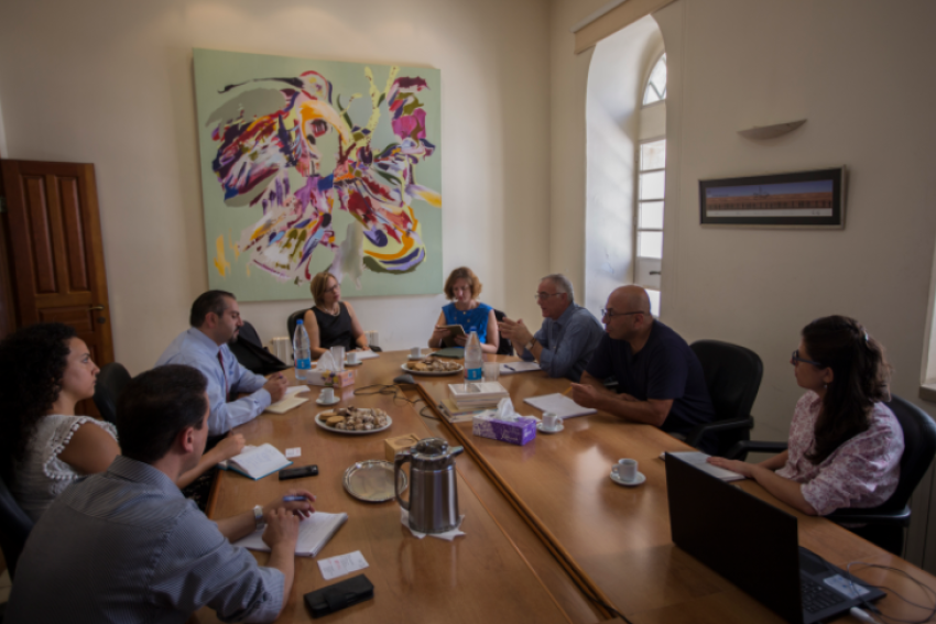 Ziad Khalaf, AMQF Director General, Fida Touma, AMQF Deputy Director, Wasim al-Kurdi, Director of the AMQF Educational Research and Development Programme (ERDP), Nader Dagher, Director of Communication and Public Relations, and Majd Hajjaj, AMQF Resource Development Manager received the GIZ delegation.