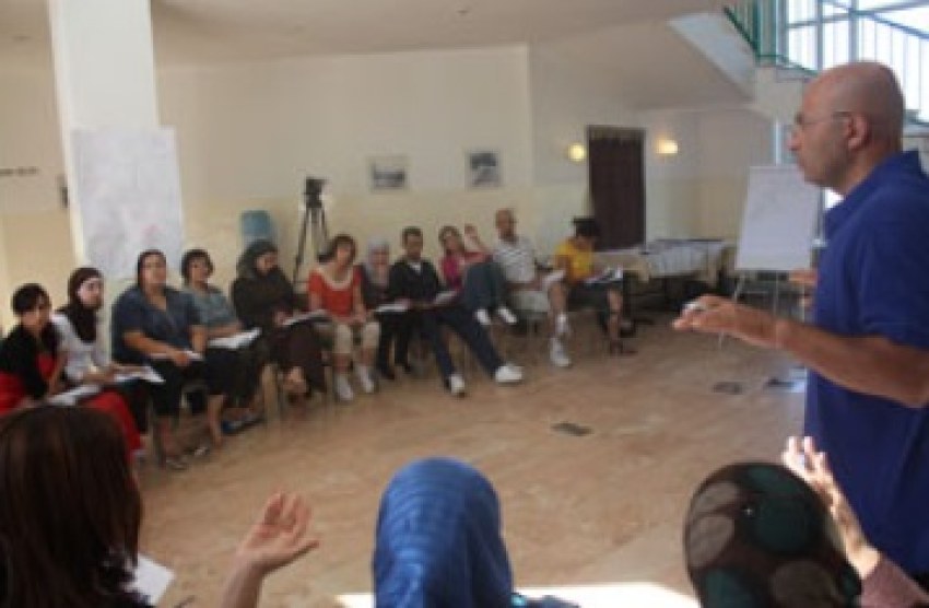 For the fourth year in a row, the Qattan Centre for Research and Education and Development (QCRED) organised its “Drama in Education” summer school in the Jordanian city of Jerash from 17-31 July 2010. Sixty-four teachers from Palestine and the Arab world participated in this year’s school which was supervised by Professor Tag Mcentegart from the United Kingdom, Wasim Al Kurdi from Palestine (director of the second year at the summer school), and Konstantinos Amoiropoulos from Greece (director of the first year). In addition to the theoretical side, the programme included four practical application workshops. Steve Payne from Australia conducted a workshop on “School as a Centre for Social Projects” in which he described the cultural development within society. Malik Rimawi from Palestine conducted another workshop on “Writing as a Creative Context”, Rawi Deeb from Lebanon presented “Reading Pictures from a Movie” where he focused on interpreting pictures from a film he presented. Finally, Demir Arsinjevis from Yugoslavia gave a presentation on using art to bring justice that law may not achieve.