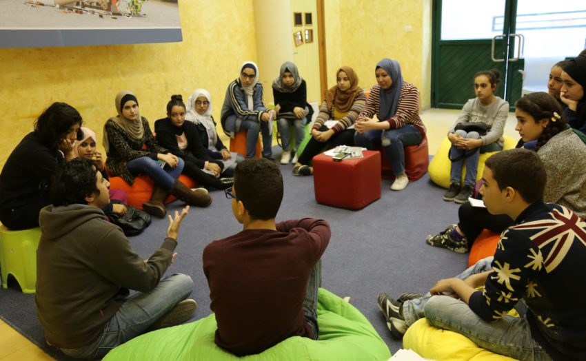 Children enrolled in the English Language Club of A. M. Qattan Foundation’s Child Centre-Gaza, organized a literary meeting with young writers, Fatema Touman and Diaa Al-Sirsawai to discuss their stories, which won the Youth Short Story Contest (Novell Gaza 2). The two female authors talked about their personal experience in writing and publishing in English.