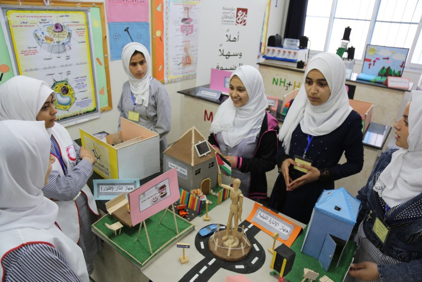 Students of the “Design your Science Project” programme participated in a science exhibition entitled “Excellence has a Story”, which was opened on Wednesday, 10th of April 2019, by the Jabalia Secondary Girls School (A).