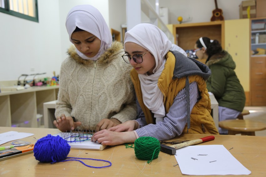 Students of Banat al-Zeitoun Elementary Girls School “B” participated in the ‘Design Your Scientific Project’ Programme organised by the Childs Centre – Gaza/ A.M. Qattan Foundation, where they learned mathematics through linear and parametric equations describing various forms of art and architecture. The students were able to connect mathematics as a science to its possibilities for producing artistic forms.