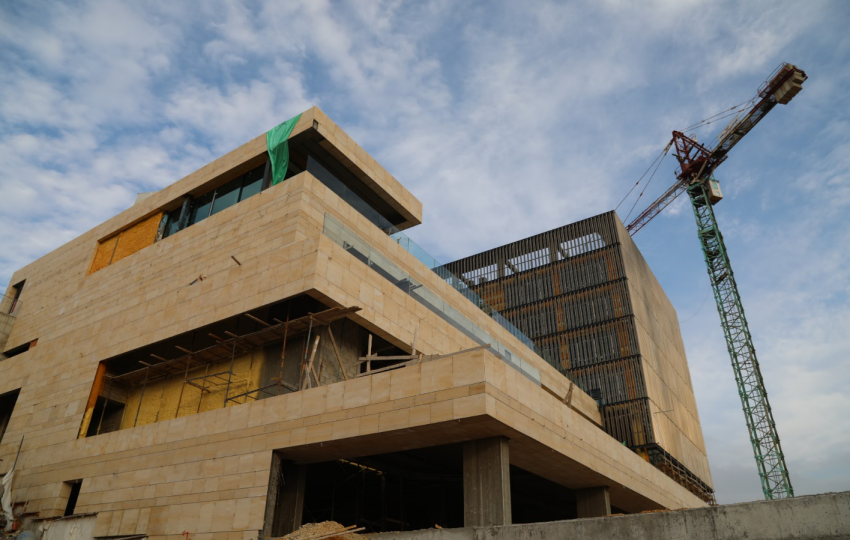 Work is underway to finish the new building of the A. M. Qattan Foundation (AMQF) in the Al-Tira neighbourhood, Ramallah. Installation of glass and aluminium panels has reached its final stages.