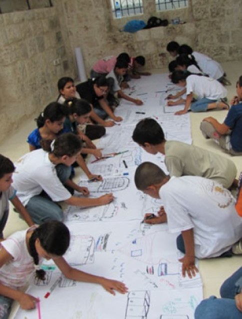 On August 3, and in coordination with the Association of Ni'lin and the Medical Relief C ommittee, the Ni’lin Teacher Centre hosted 104 children participating in the “Life and Hope” summer camp. During the camp, children watched the “Crutch” film for Palestinian director Abdel Salam Shehadeh; the film deals with violence against children in the Palestinian society and reveals its historical, economic and social roots. The children also watched the documentary film "Colour of Olives" by American director Carolina Riyaz. The film is about the disastrous effects of the Apartheid Wall on the Palestinian people.