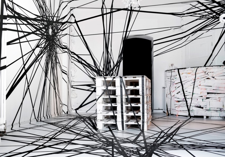 TAPE THAT is an art collective that mostly works with tape as a medium, since 2011. With roots in the urban art movement, their works range from complex and colorful tape and light installations to minimalist black and white murals. Their tape artworks can be found in a variety of places, such as underground nightclubs, abandoned buildings, showrooms and galleries.