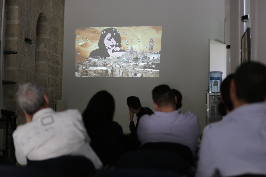 The concept of GossipTV was developed during a workshop recently held by the AMQF Public Programme, in cooperation with the Ramallah Municipality, in the Hosh Qandah Community Center. Shaw gave the said workshop to a group of artists, directors and actors. It focused on creating a studio with a simple green screen in the municipality-owned Hosh Qandah in Ramallah. At the time, participants collaborated to launch GossipTV, a channel that used video art and visual poetry to show support to the daily struggles and acts of resistance Palestinians led against the Israeli occupation.