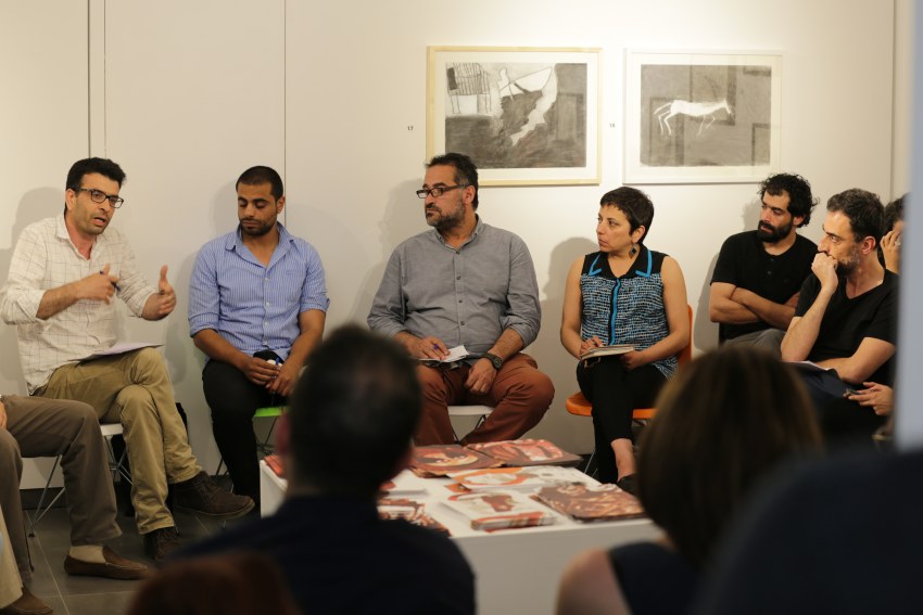 Participants at the seminar included artist Khaled Hourani, Samar Martha, Director of Gallery One, Mahmoud Abu Hashhash, Director of the Culture and Arts Programme at AMQF, Louay Misleh, LARP Representative and Yazid Anani, Director of the Public Programme.